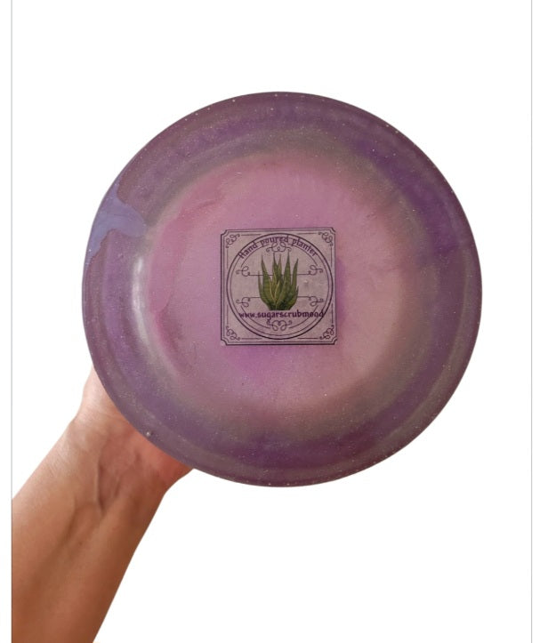 Elevate your plant display with this enchanting hand-poured resin plant pot, designed to mimic the raw beauty of natural crystal formations. Featuring a stunning drip effect that cascades down the side like a shimmering stalagmite, this pot blends rich purples, soft pinks, and glints of silver for a dreamy, otherworldly finish.
