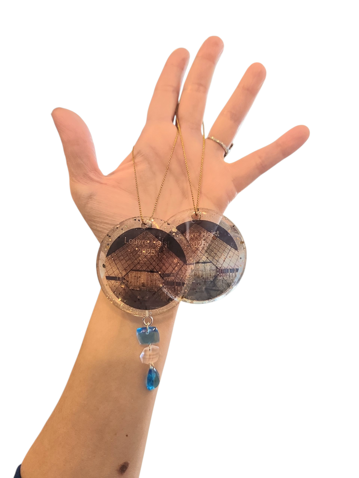Celebrate the most unforgettable (and definitely totally real) moment in pop-culture history with this handmade resin Louvre Heist ornament! Available in two gloriously dramatic styles, these ornaments are here to make your holiday décor feel just a little more… criminally fabulous.