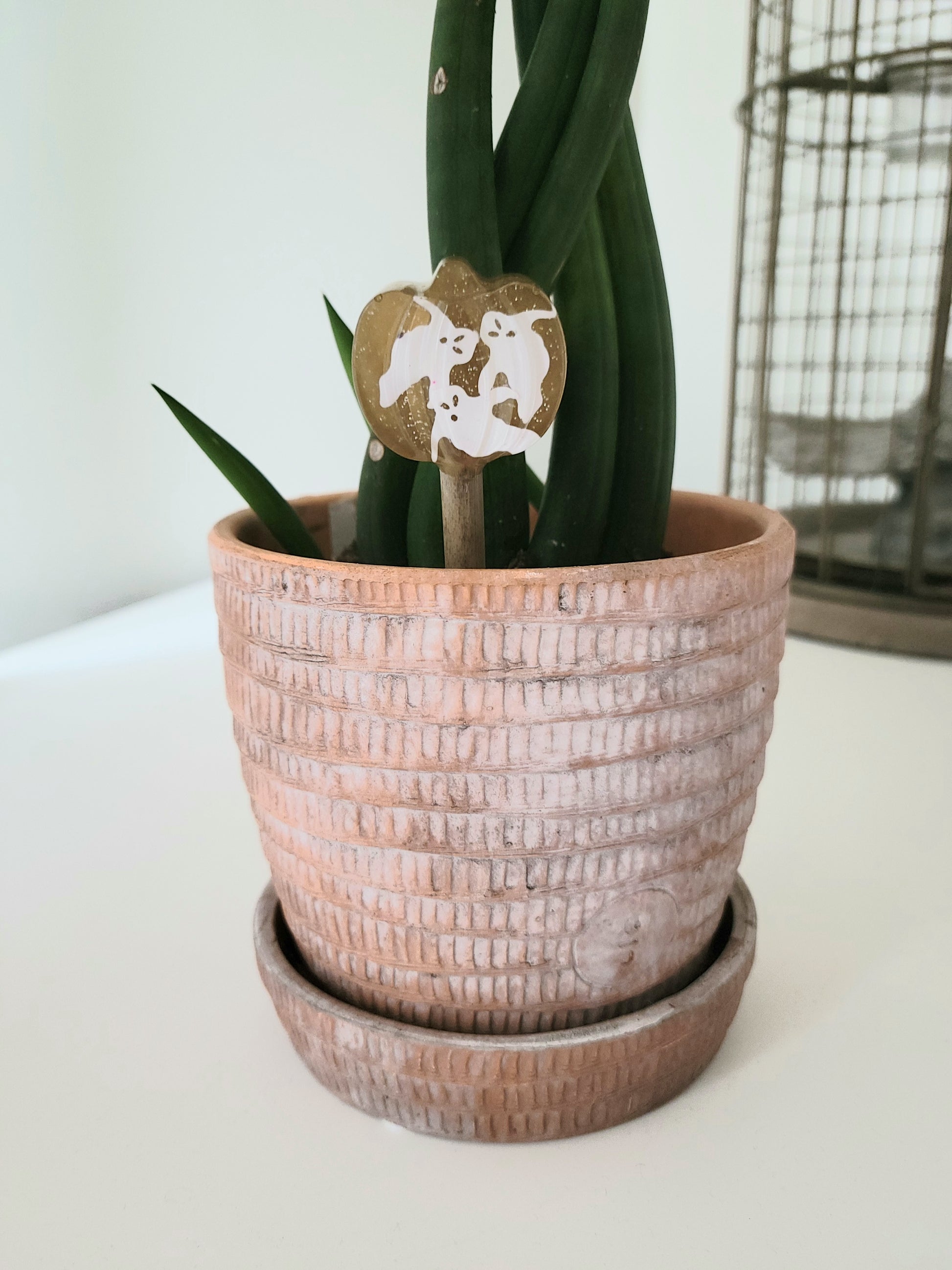 A mini version of our original decorative plant stakes. Fall forward and festive. Adorable mini pumpkin that is perfect for smaller plants in your home or office.