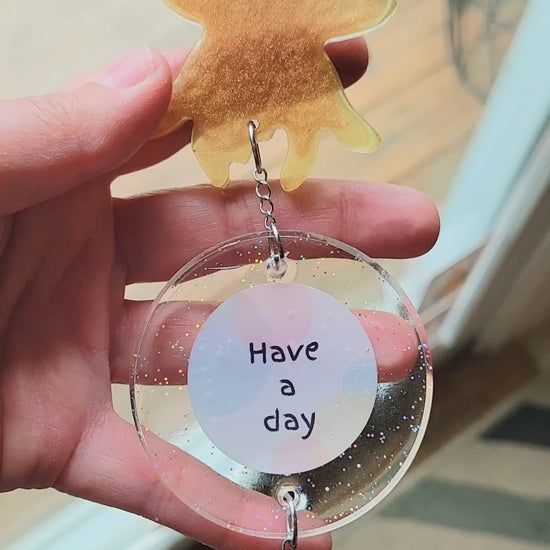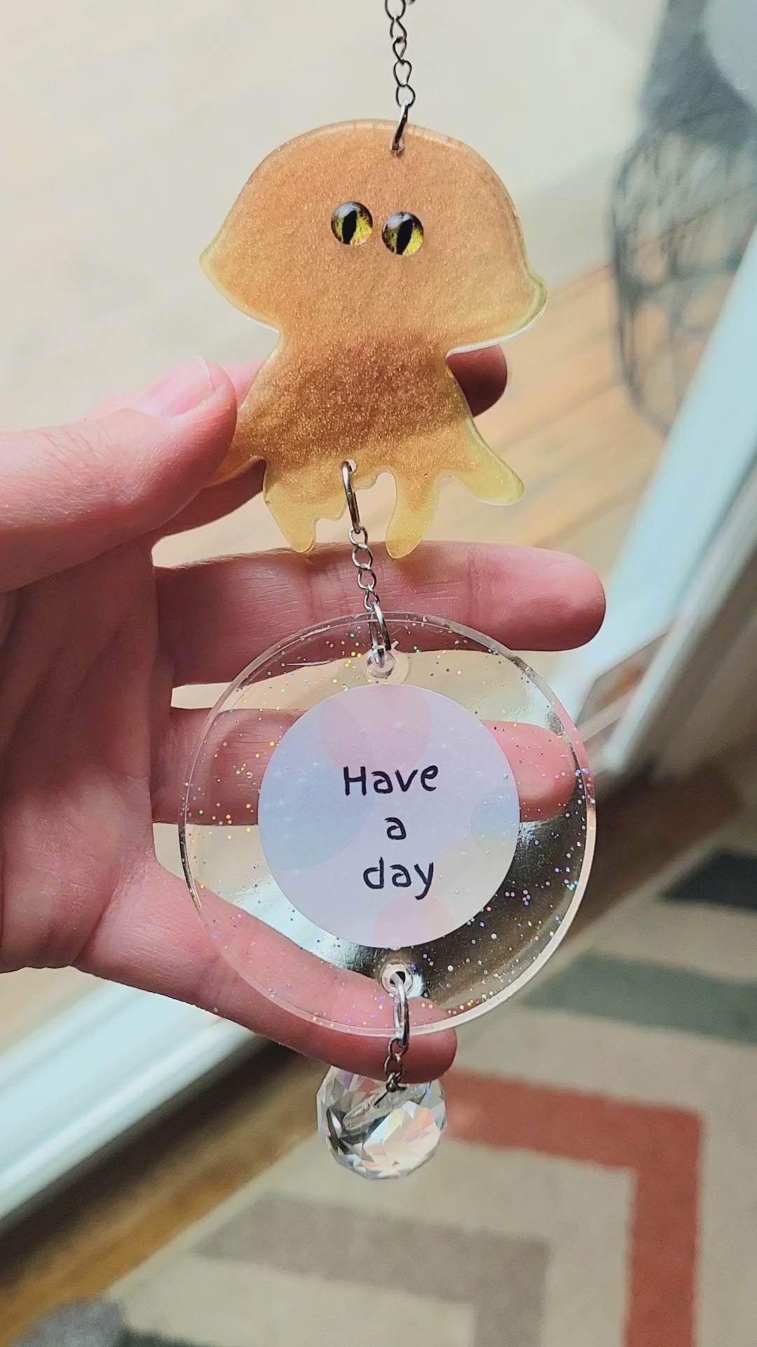 One hand poured resin jellyfish suncatcher. "Have a day."